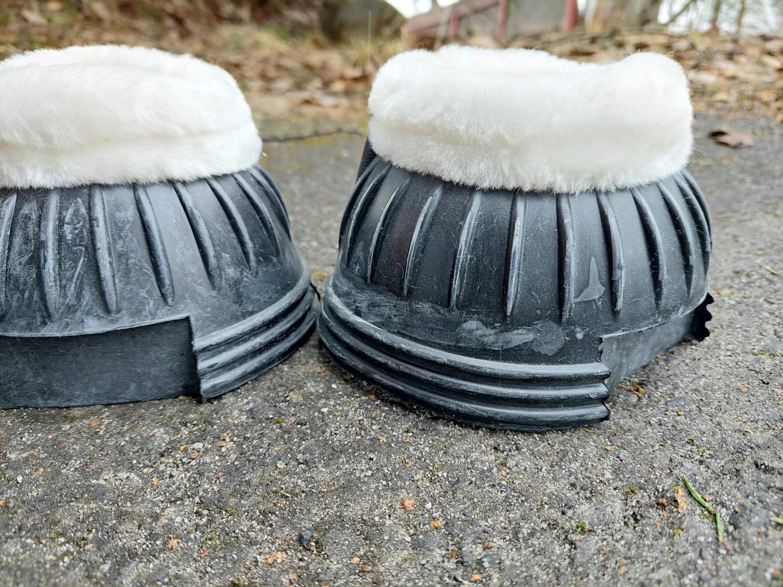 Boots i naturgummi med fuskpäls.