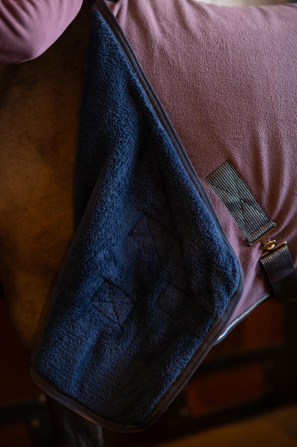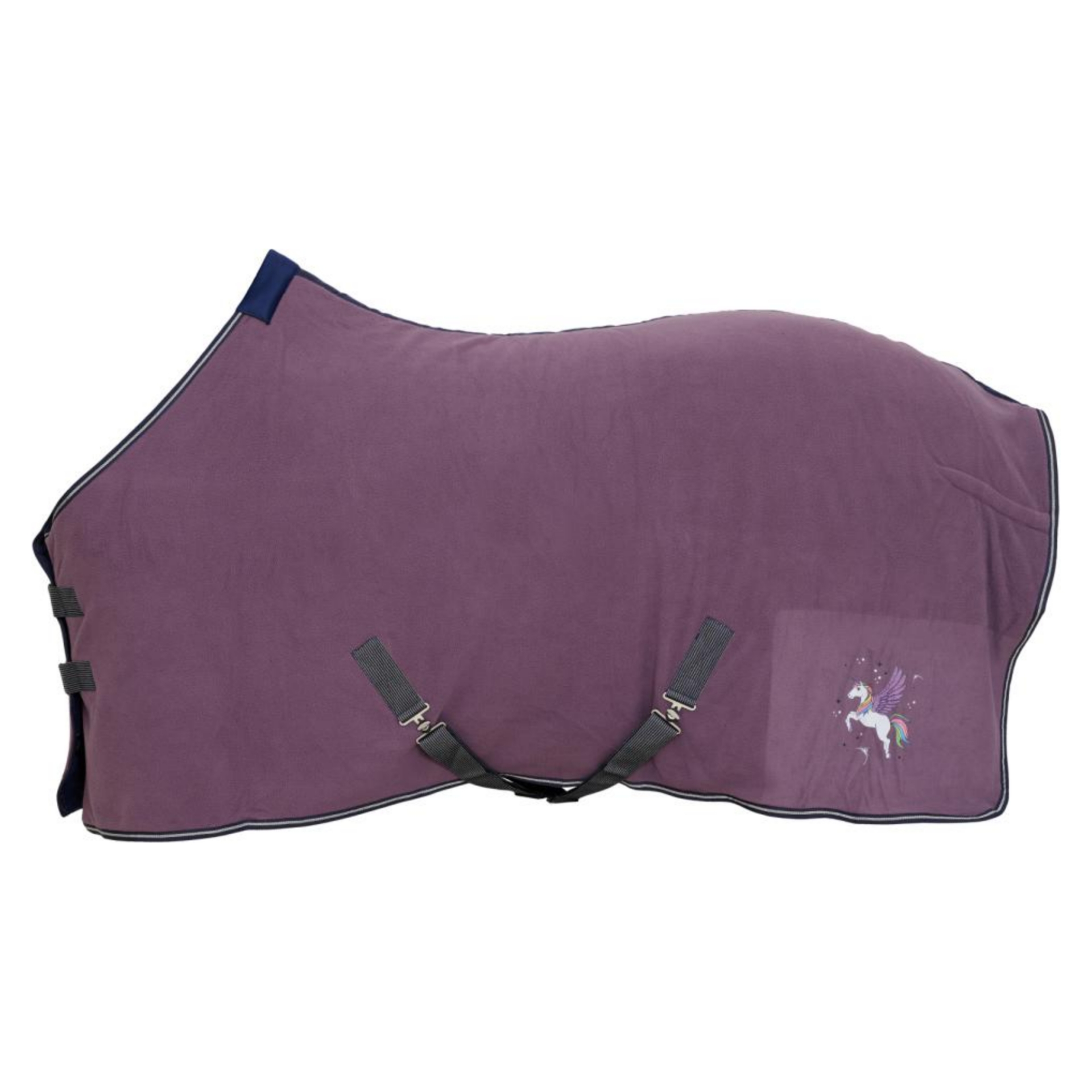 Sött fleecetäcke med enhörningstryck. Fodrat med teddy. Neoprenvaddering över manken. Silverglittrande på gjordar kanten runt om. Glänsande silverdetaljer.